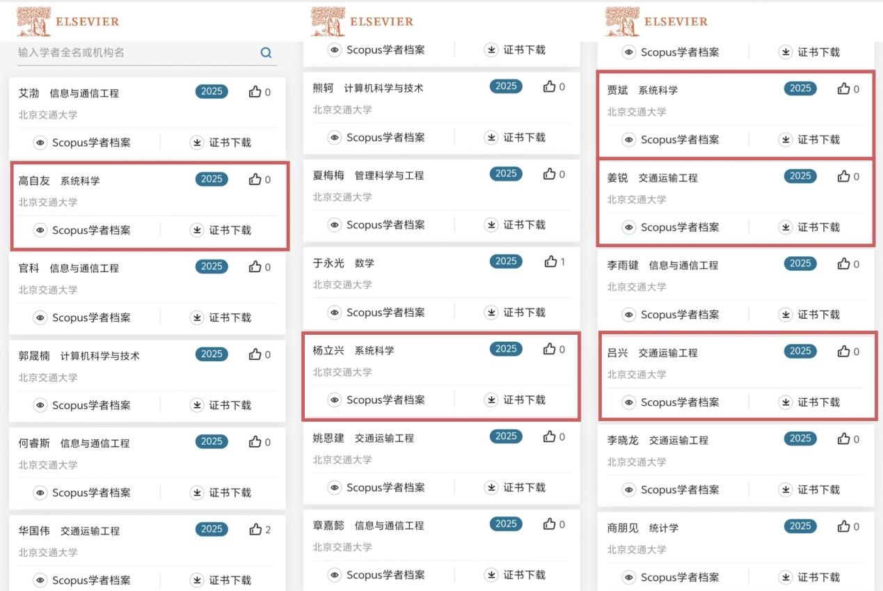 近日,爱思唯尔(Elsevier) 正式发布2025“中国高被引学者”(Highly Cited Chinese Researchers) 榜单。公司高自友、杨立兴、贾斌、姜锐、吕兴5名学者上榜。