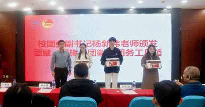 校团委副书记杨新伟为全体新生团支部书记颁发北京共青团“团务工具箱”,勉励他们带领支部同学奋发有为,展现青春风采。